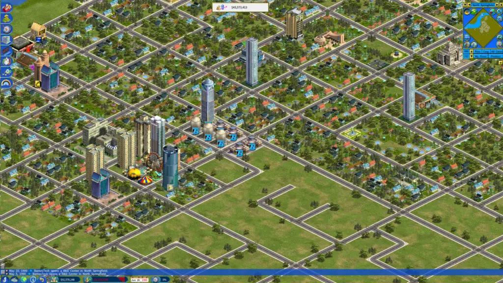 The graphics are best described as being functional but dated. The game graphics are basically the same as those in Capitalism 2. With a few changes being made to the graphics and user interface over the years.